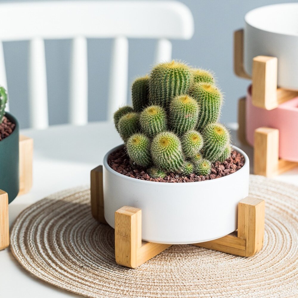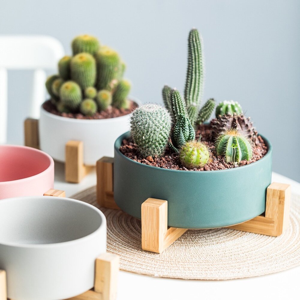 北歐風多用途木架陶瓷 花盆木架 木架沙發碗 木架寵物碗 陶瓷花盆 水培花盆 微波烤箱碗