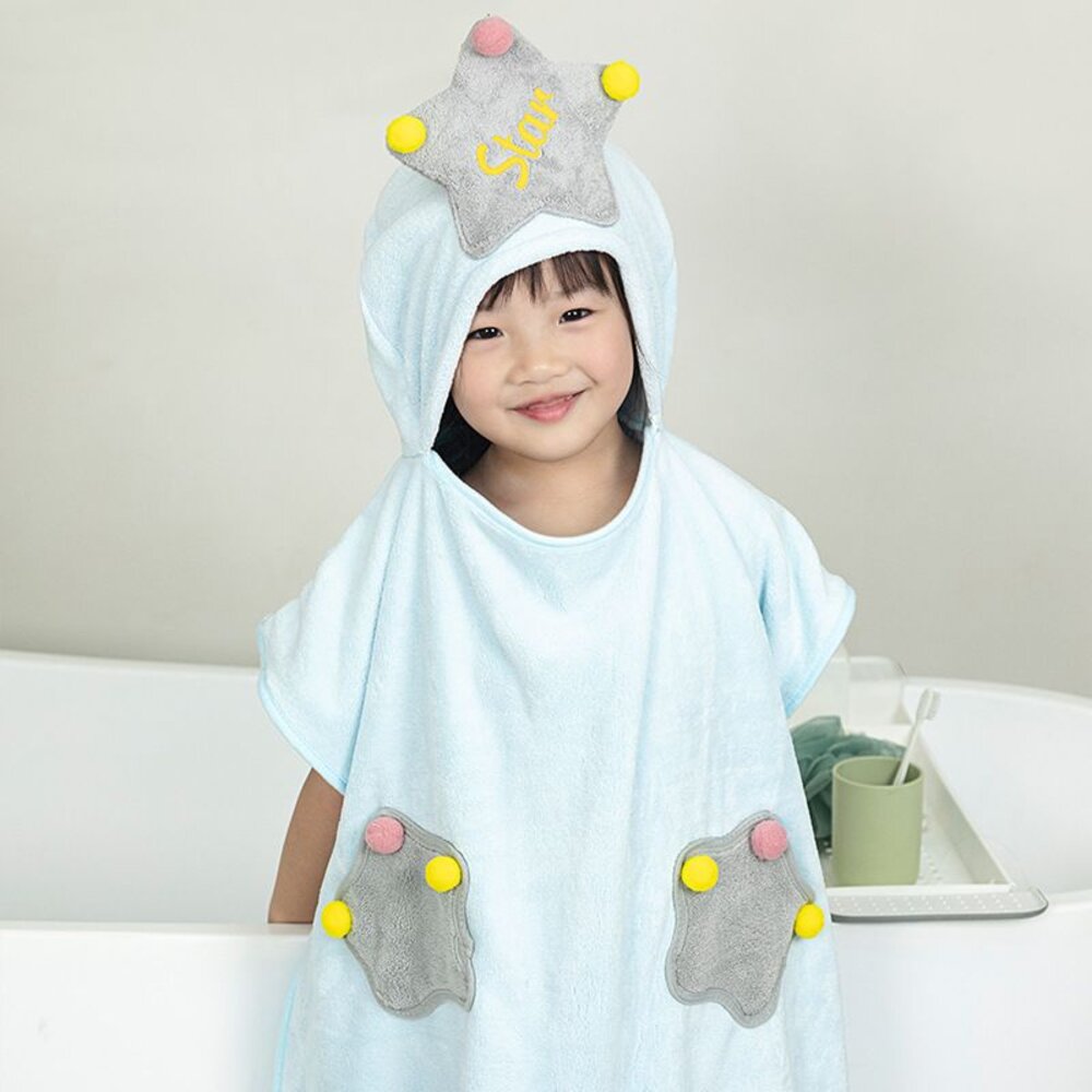 商品名稱:星星兒童斗篷浴巾 珊瑚絨浴巾 披風浴巾 卡通浴巾 寶寶毛巾 游泳浴巾 洗澡浴巾 送禮