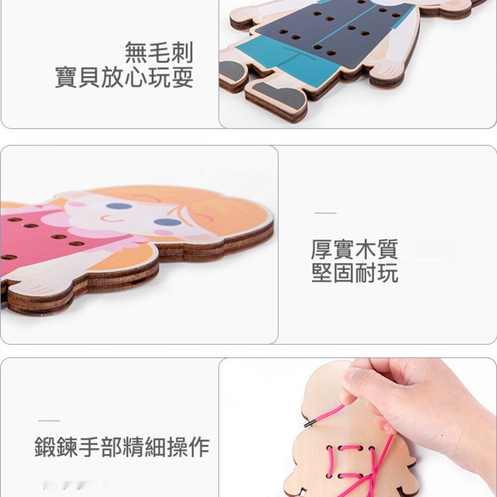 兒童木製穿線繫鞋教具 蒙特梭利 蒙氏教具 穿繩玩具 穿線玩具 穿鈕釦練習