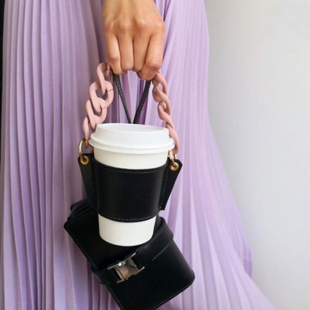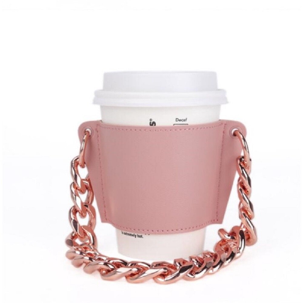 商品名稱:皮革環保杯套 飲料手提袋 手搖飲杯套 咖啡杯套 飲料杯套 環保提袋 時尚 鏈條包 送禮