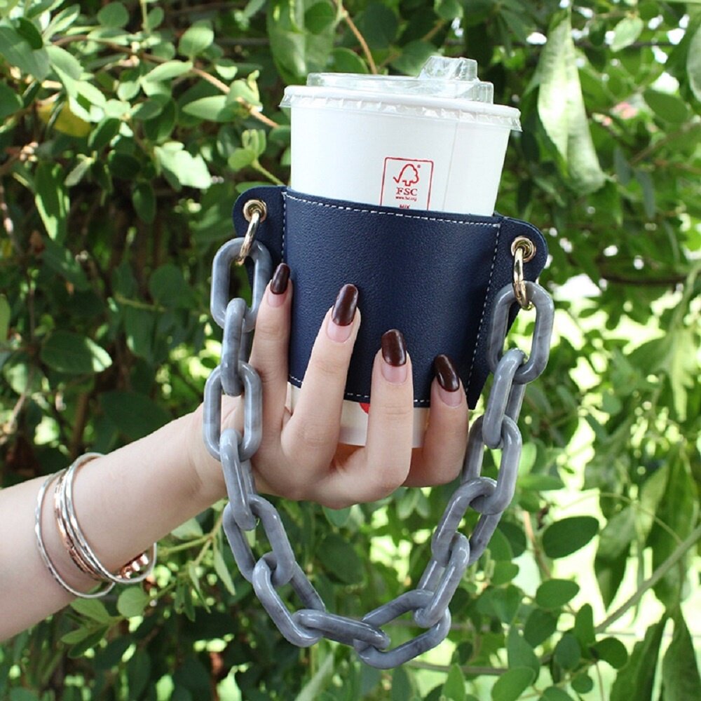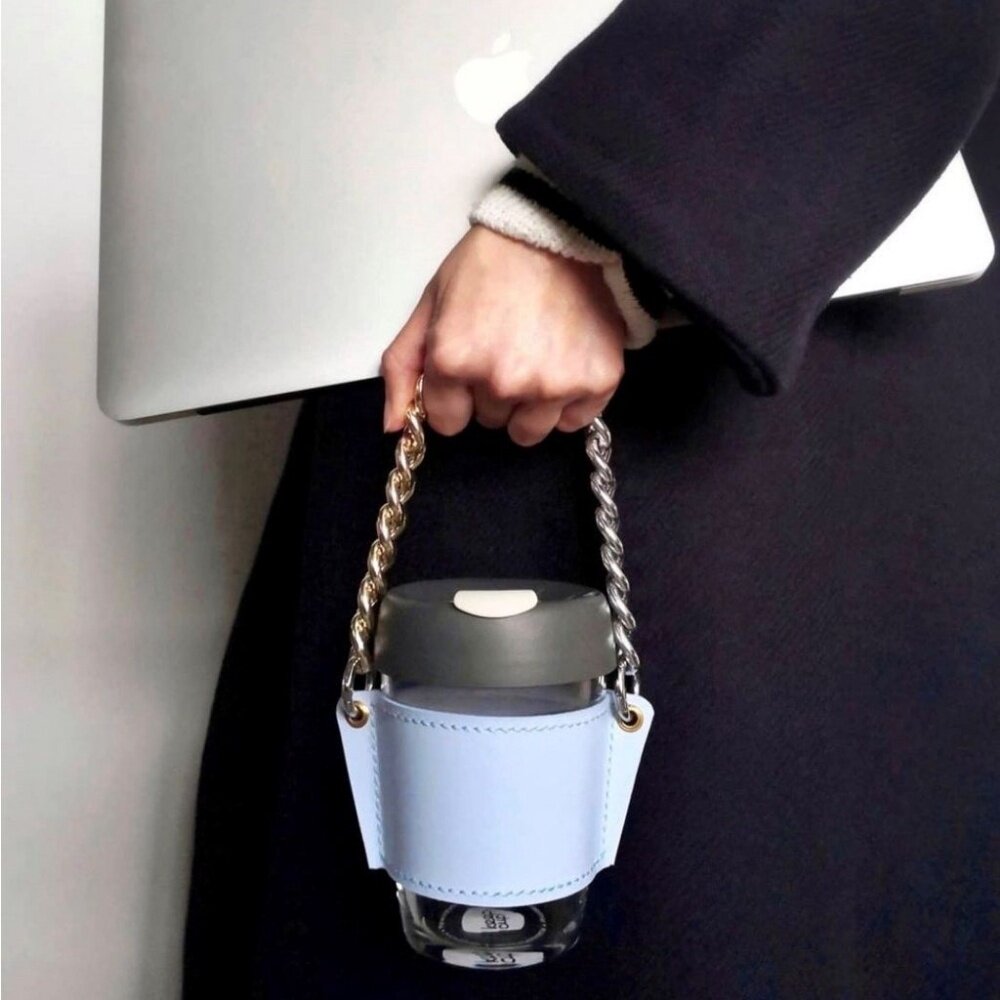 皮革環保杯套 飲料手提袋 手搖飲杯套 咖啡杯套 飲料杯套 環保提袋 時尚 鏈條包