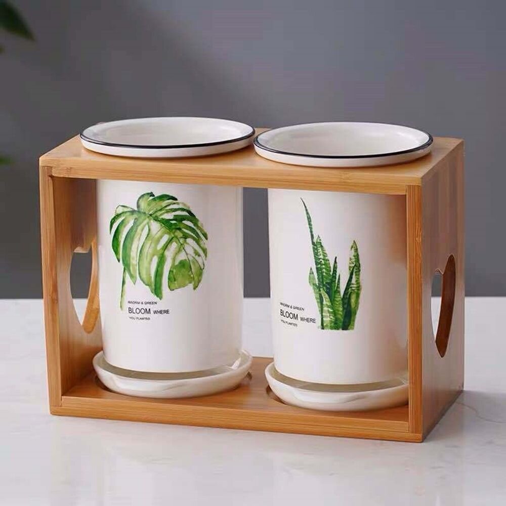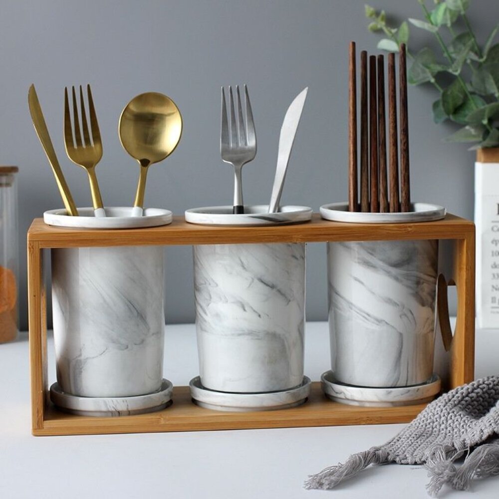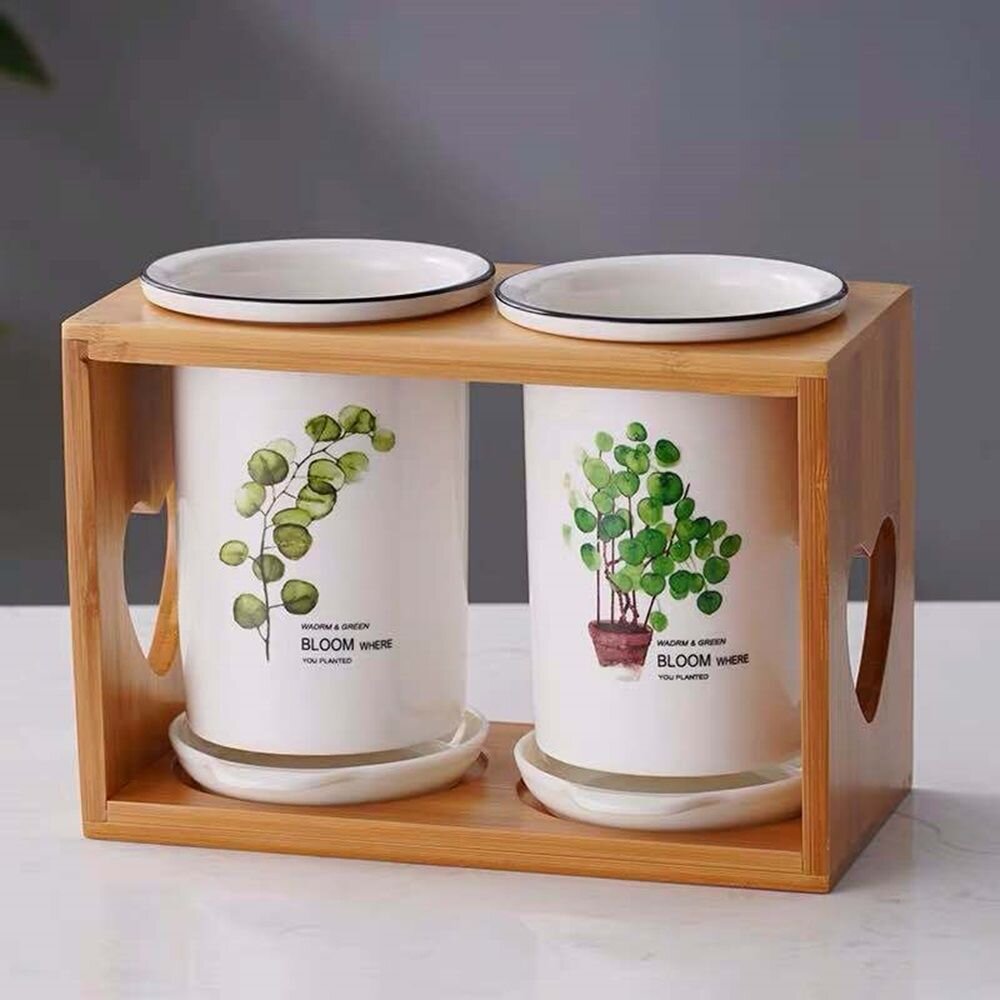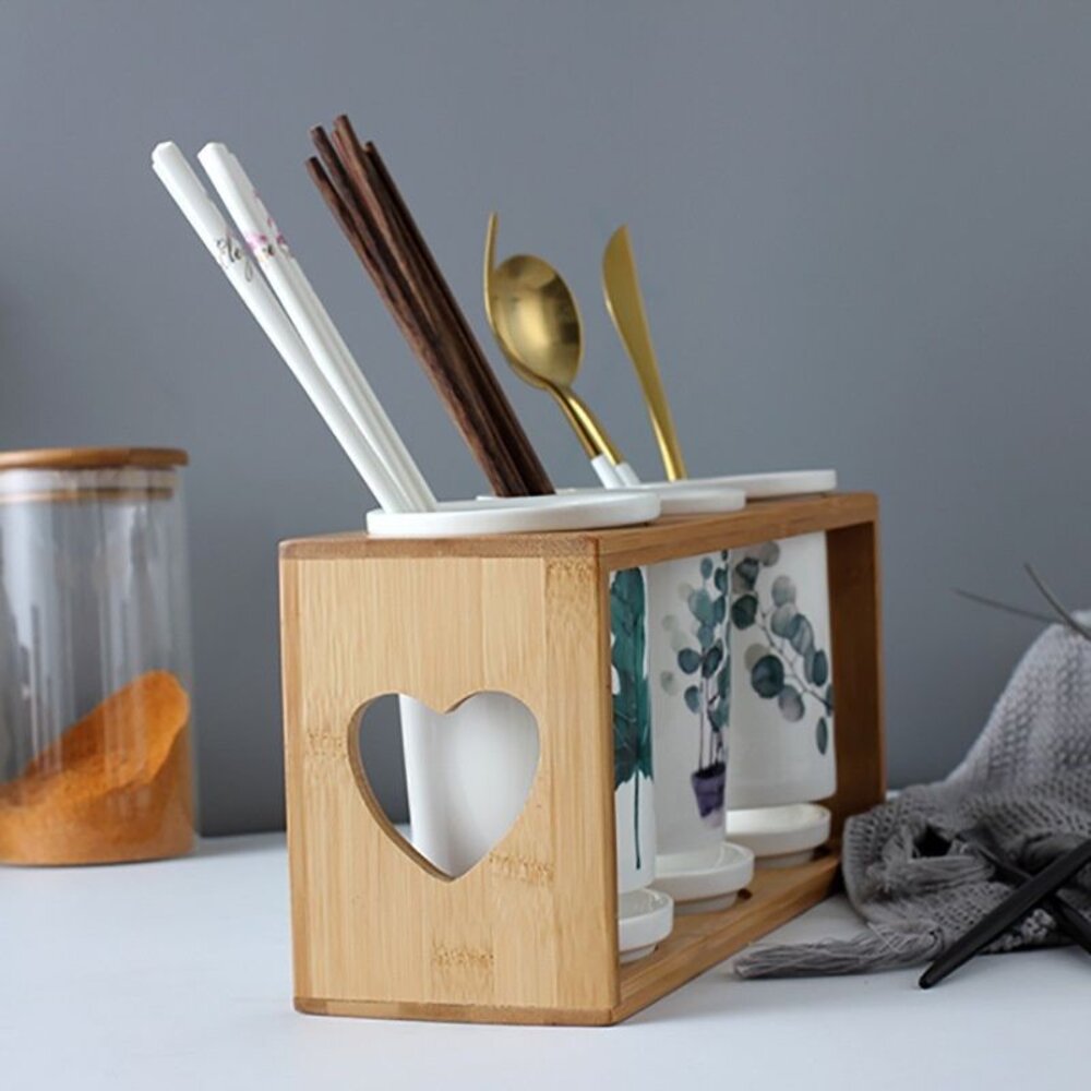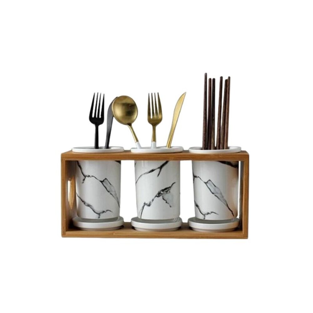 竹木陶瓷餐具筒 瀝水筒 廚房用品 送禮-圖片-1