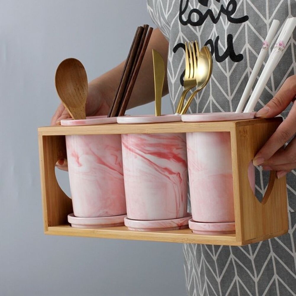 竹木陶瓷餐具筒 瀝水筒 廚房用品 送禮-圖片-8
