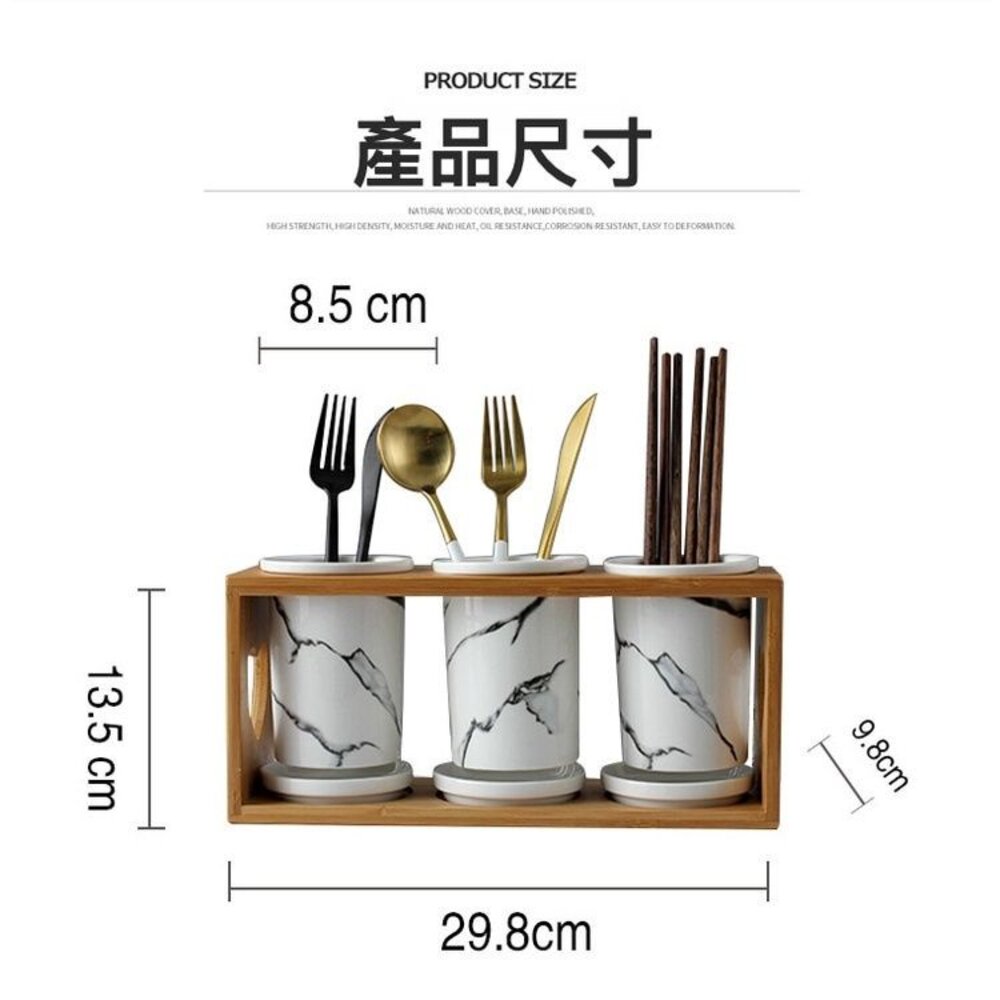 竹木陶瓷餐具筒 瀝水筒 廚房用品 送禮-圖片-4