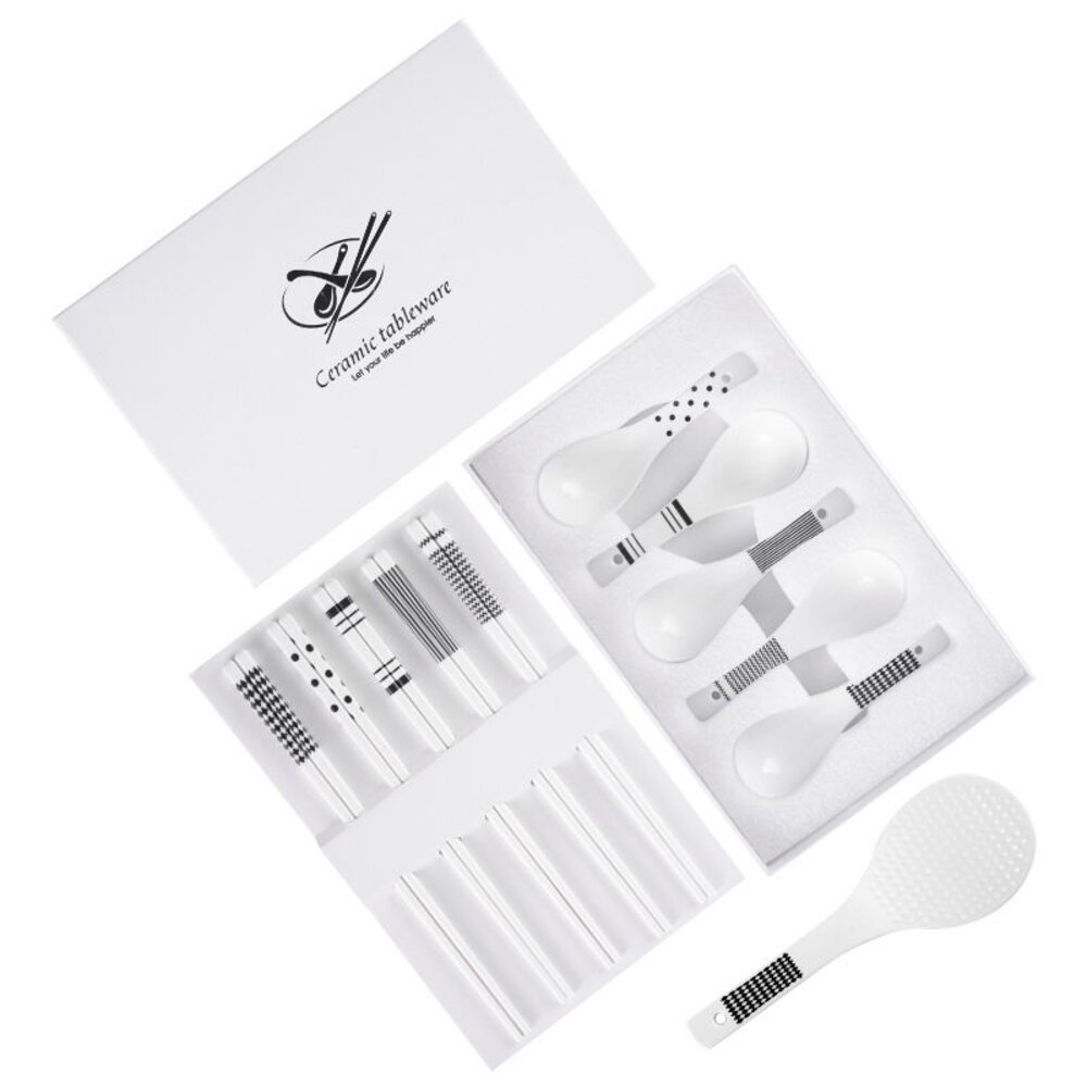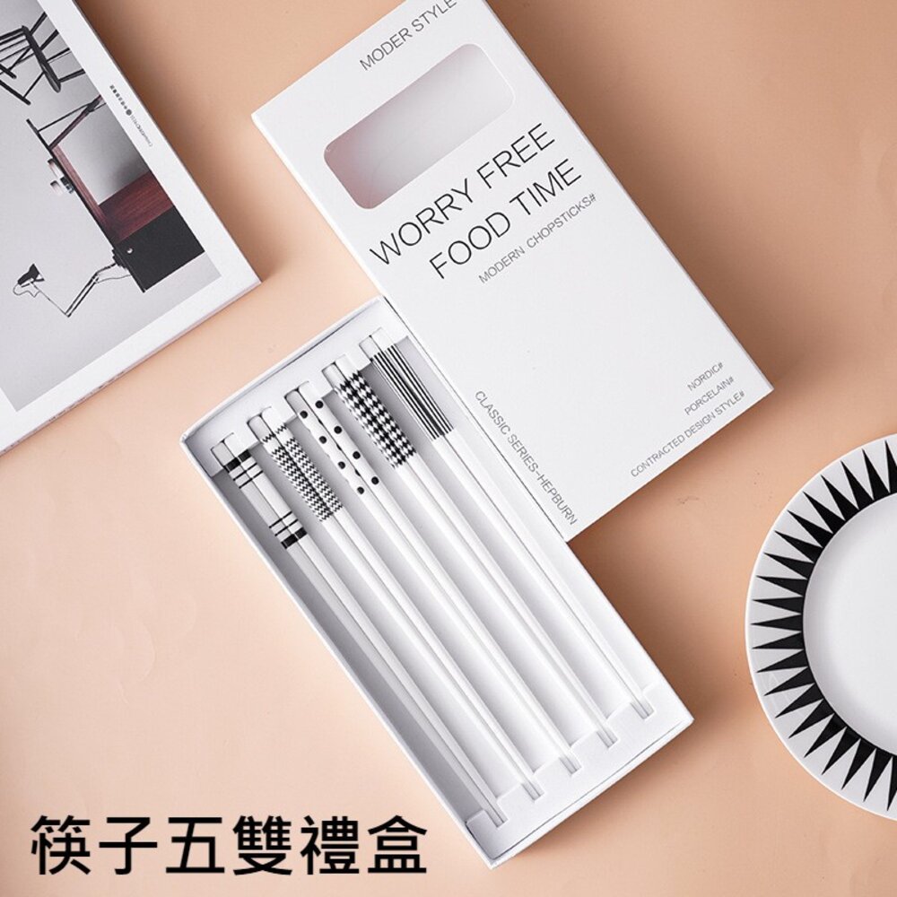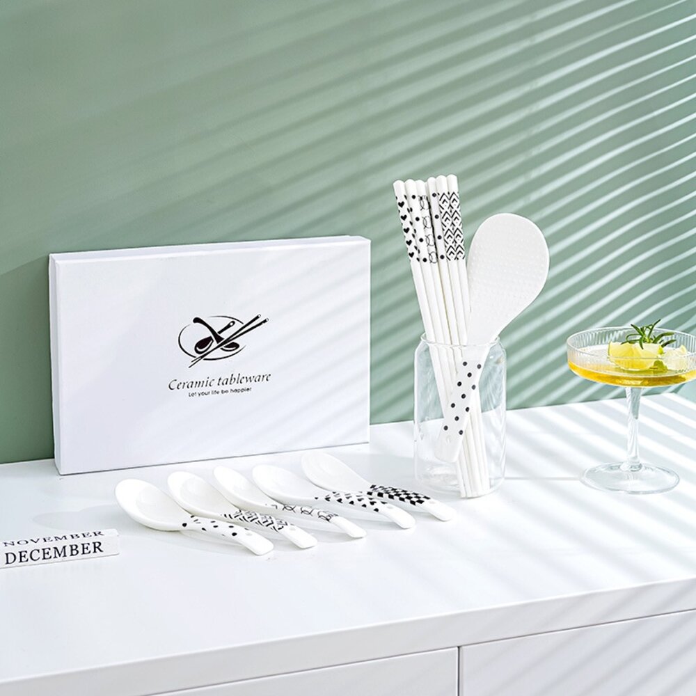 商品名稱:赫本風陶瓷餐筷組 陶瓷餐具 筷子湯匙飯匙 質感禮物 交換禮物 加厚硬殼禮盒 送禮