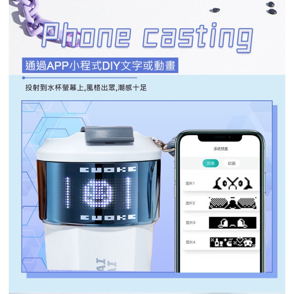 商品名稱:智能APP投屏保溫杯 溫度顯示 提醒喝水 動態客製文字 高科技 保冷杯 保溫杯 送禮