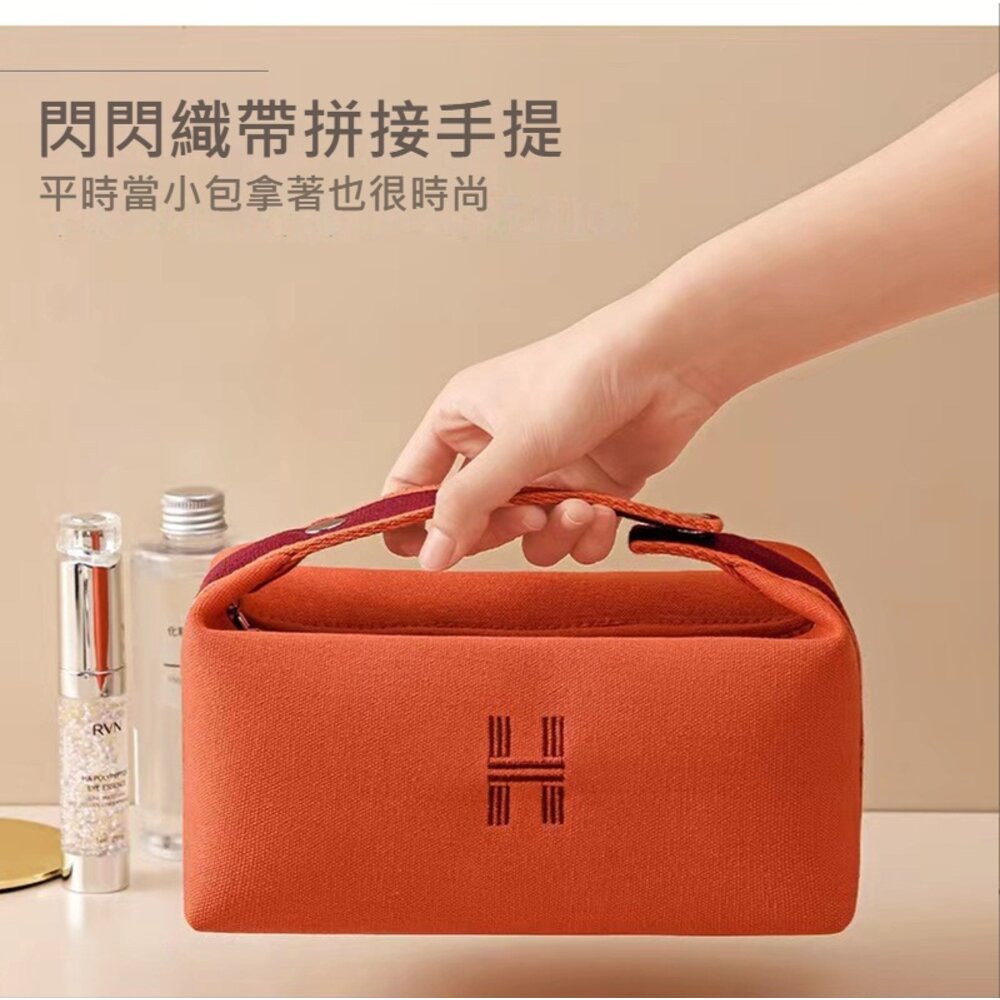 織帶手提帆布化妝包 便攜手提化妝包 字母簡約化妝包 大容量 收納包