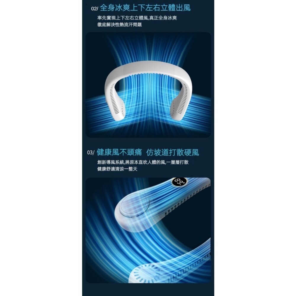 商品名稱:螢幕顯示無葉掛脖風扇 環頸風扇 運動風扇 戶外風扇 USB充電5小時超長續航 送禮