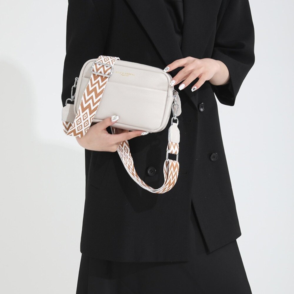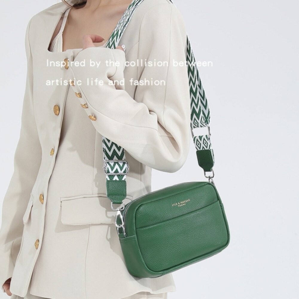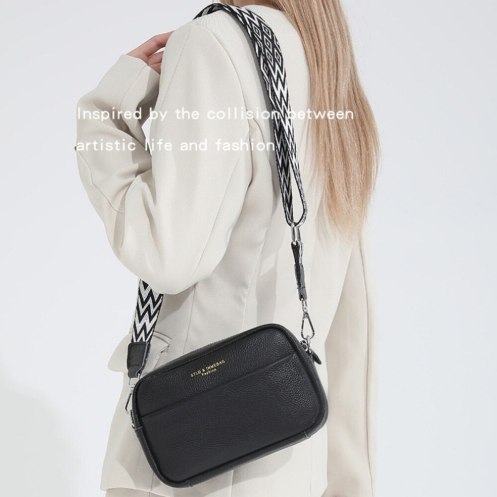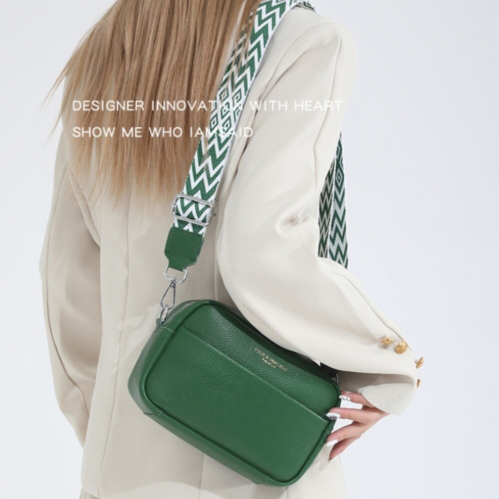 標籤:#側背包, #單肩包, #軟皮休閒包, #頭層牛皮, #寬版撞色肩帶
