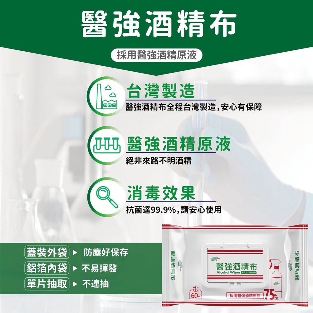 醫強75%抗菌酒精布 濕紙巾 酒精擦 60抽/包 20x15cm 99.9%抗菌
