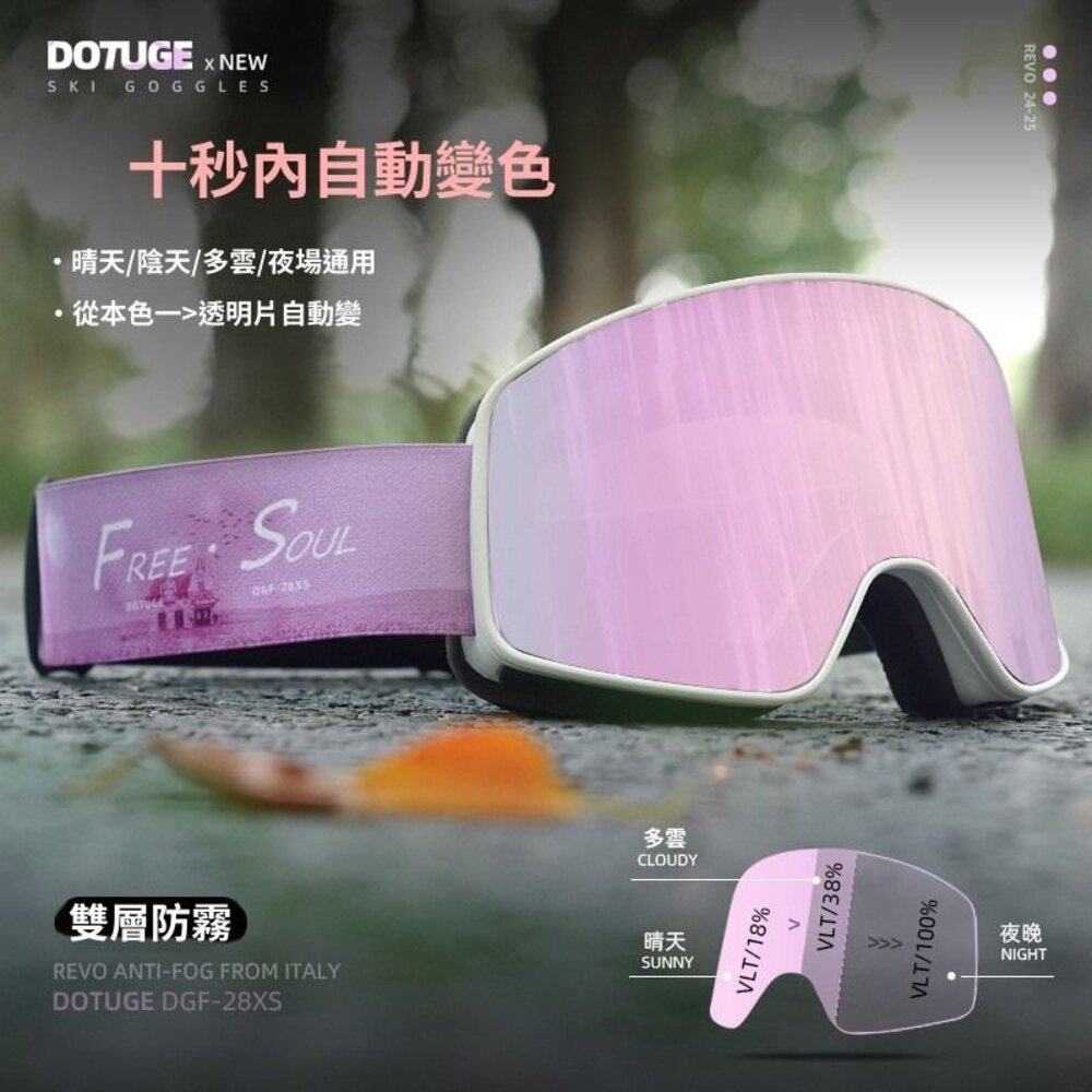 💪如果你是滑雪愛好者,這款 DOTUGE 全天候智能變色滑雪護目鏡絕對是你的最佳選擇!它能快速適應日夜光線變化,保護眼睛免受紫外線傷害,還能防止雪盲,讓你在滑雪時視野清晰無阻。