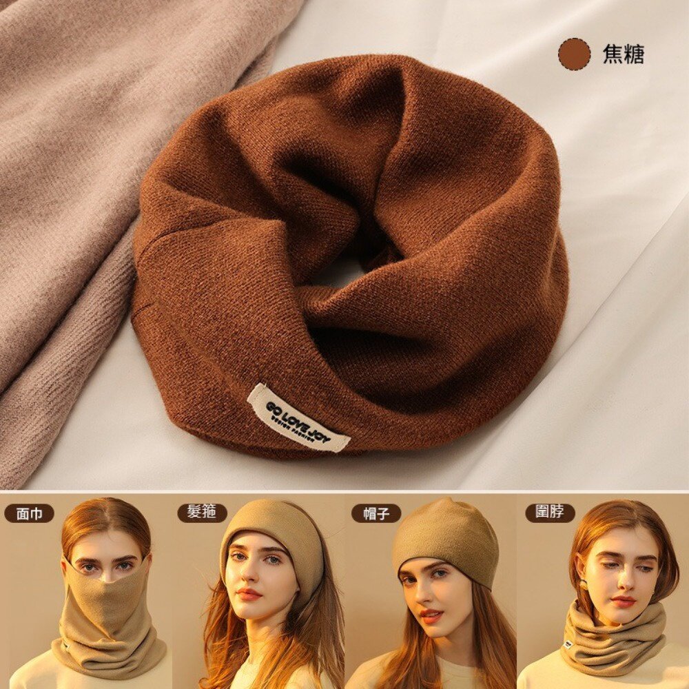 百變造型針織圍巾 防風保暖圍脖 掛耳面巾 時尚頭巾 髮帶髮箍堆帽 不起毛球 送禮