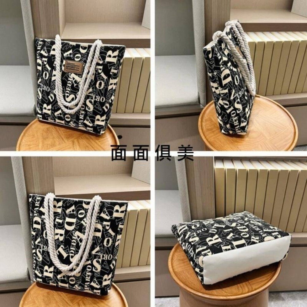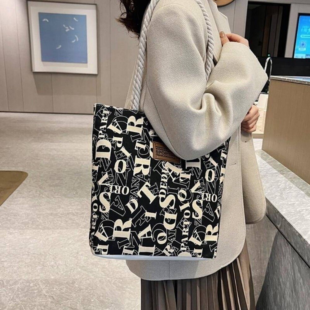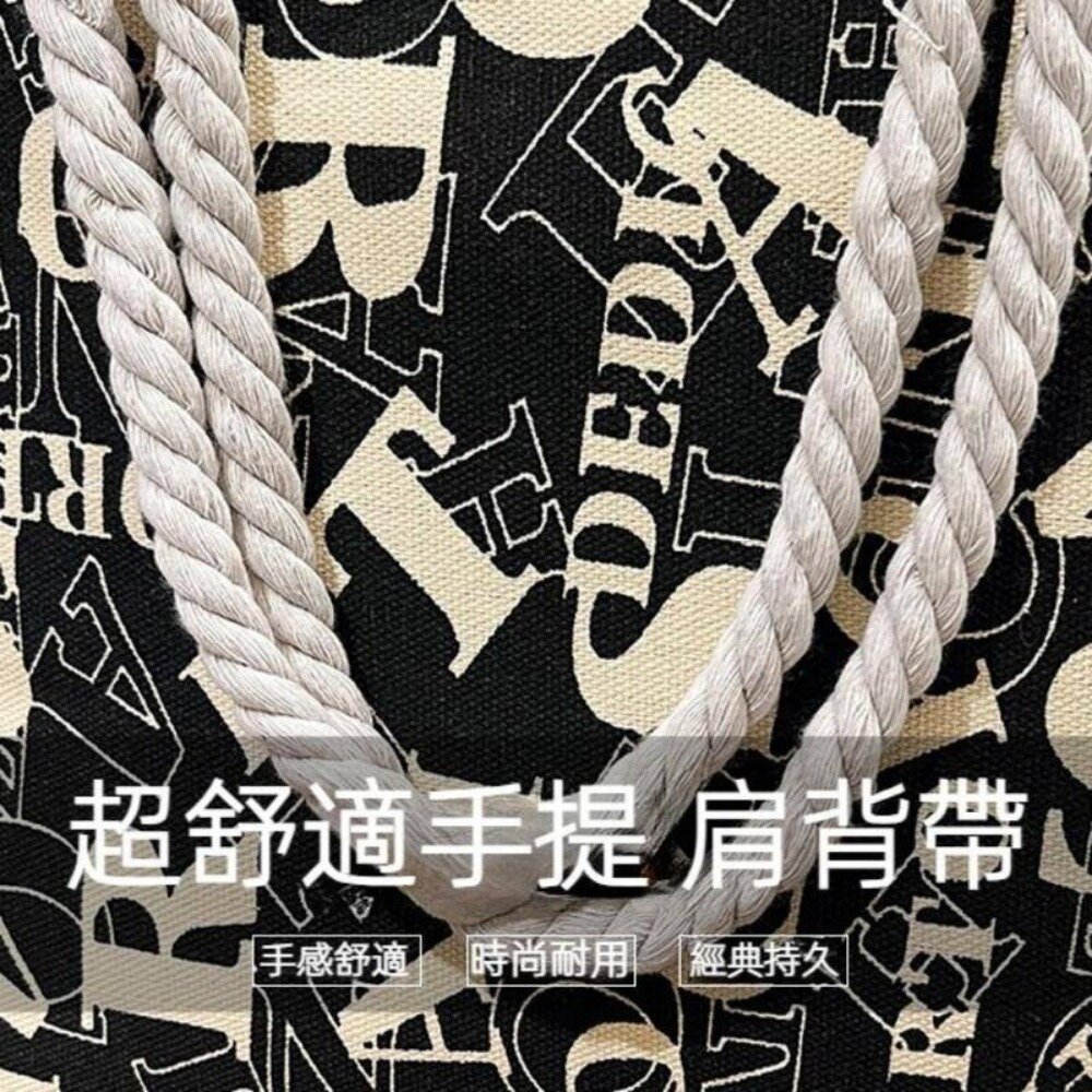 大容量個性字母帆布袋 帆布包手提袋 百搭時尚通勤托特包 購物袋
