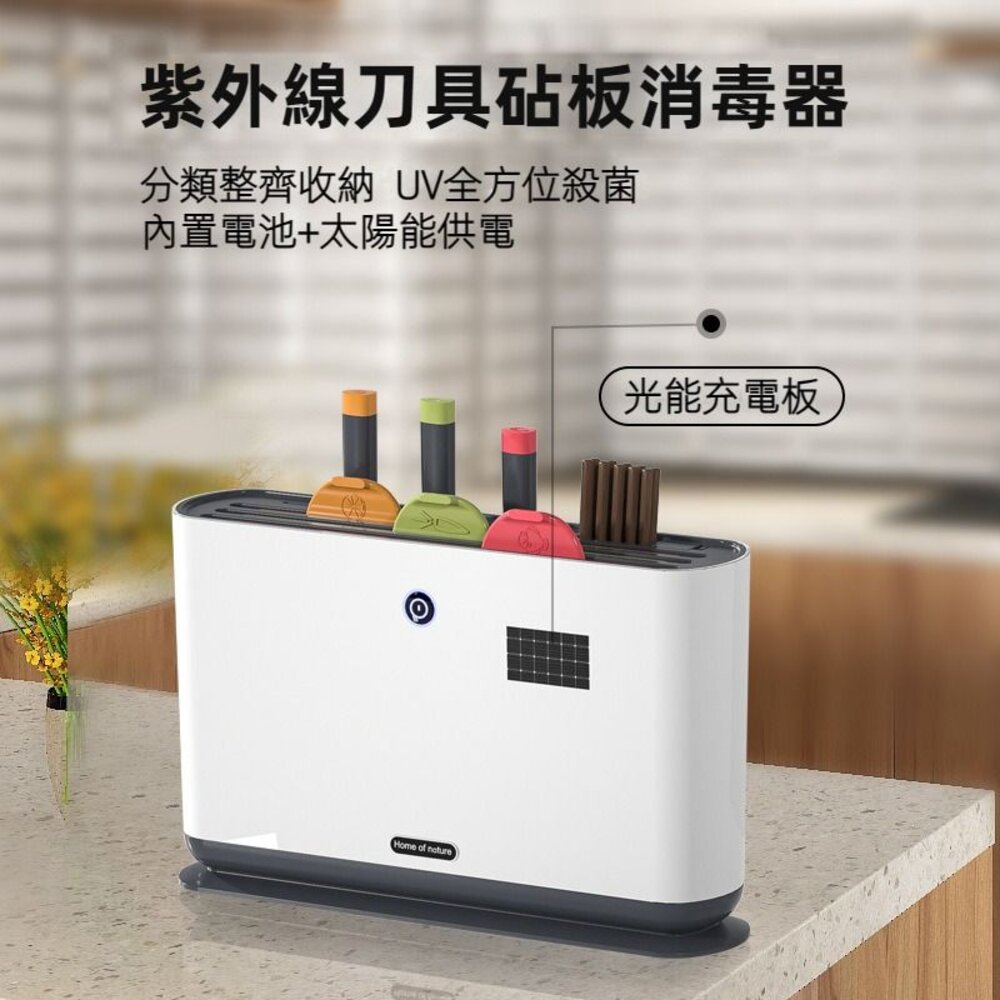 商品名稱:紫外線刀具砧板消毒器 沾版切菜板收納架 太陽能供電 USB供電 紫外線消毒風乾 送禮