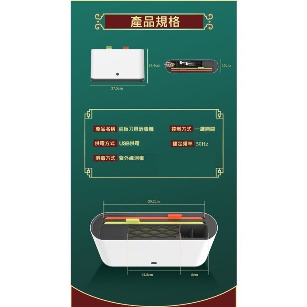 💎內容物: 消毒器本機 (USB插電)*1、砧板