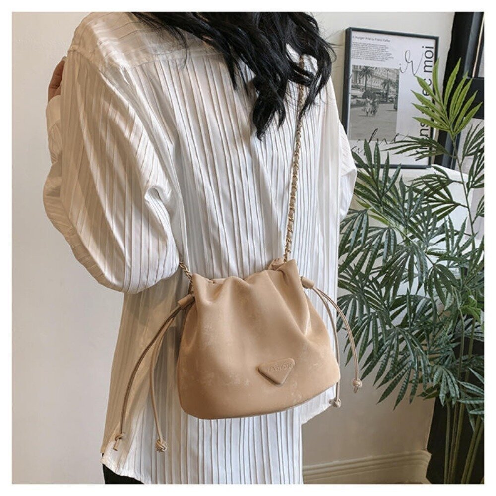 簡約時尚鏈條水桶包 斜跨包 唯美單肩包 女包 流行鏈條 2024春季