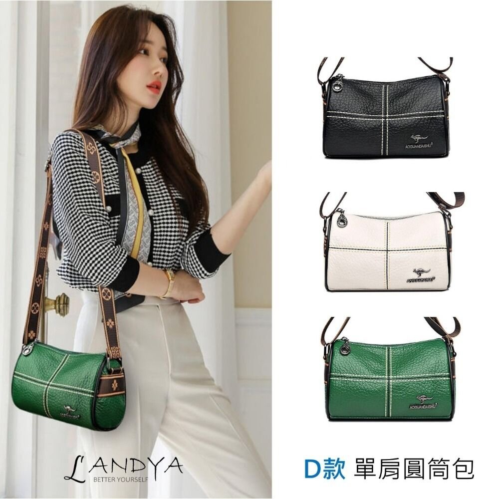 【D款】時尚真皮單肩圓筒包