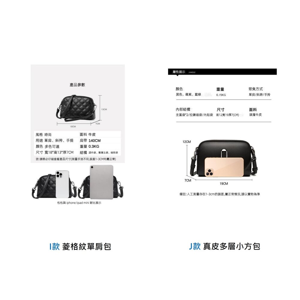 【J款】時尚真皮多層小方包 (請留意本款式為小巧尺寸設計)