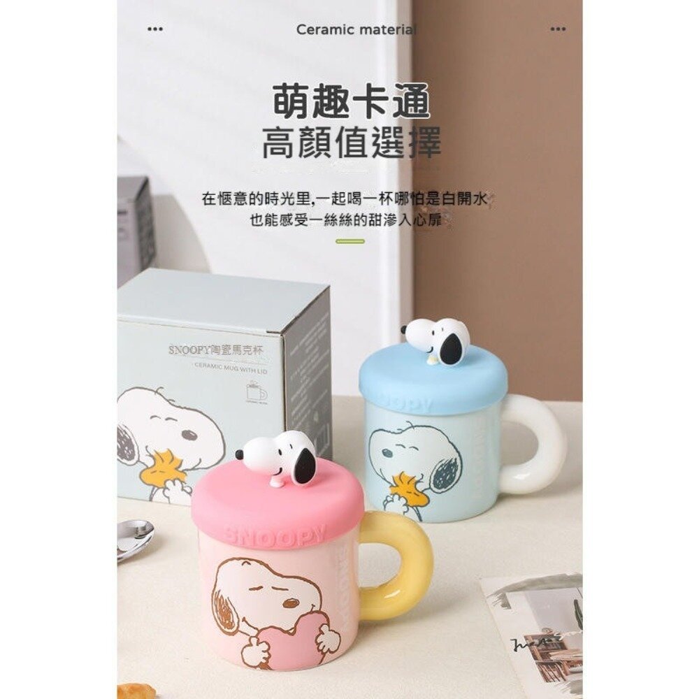 商品名稱:史努比帶蓋馬克杯 陶瓷杯 辦公室水杯 咖啡杯 Snoopy平行輸入 交換禮物 送禮