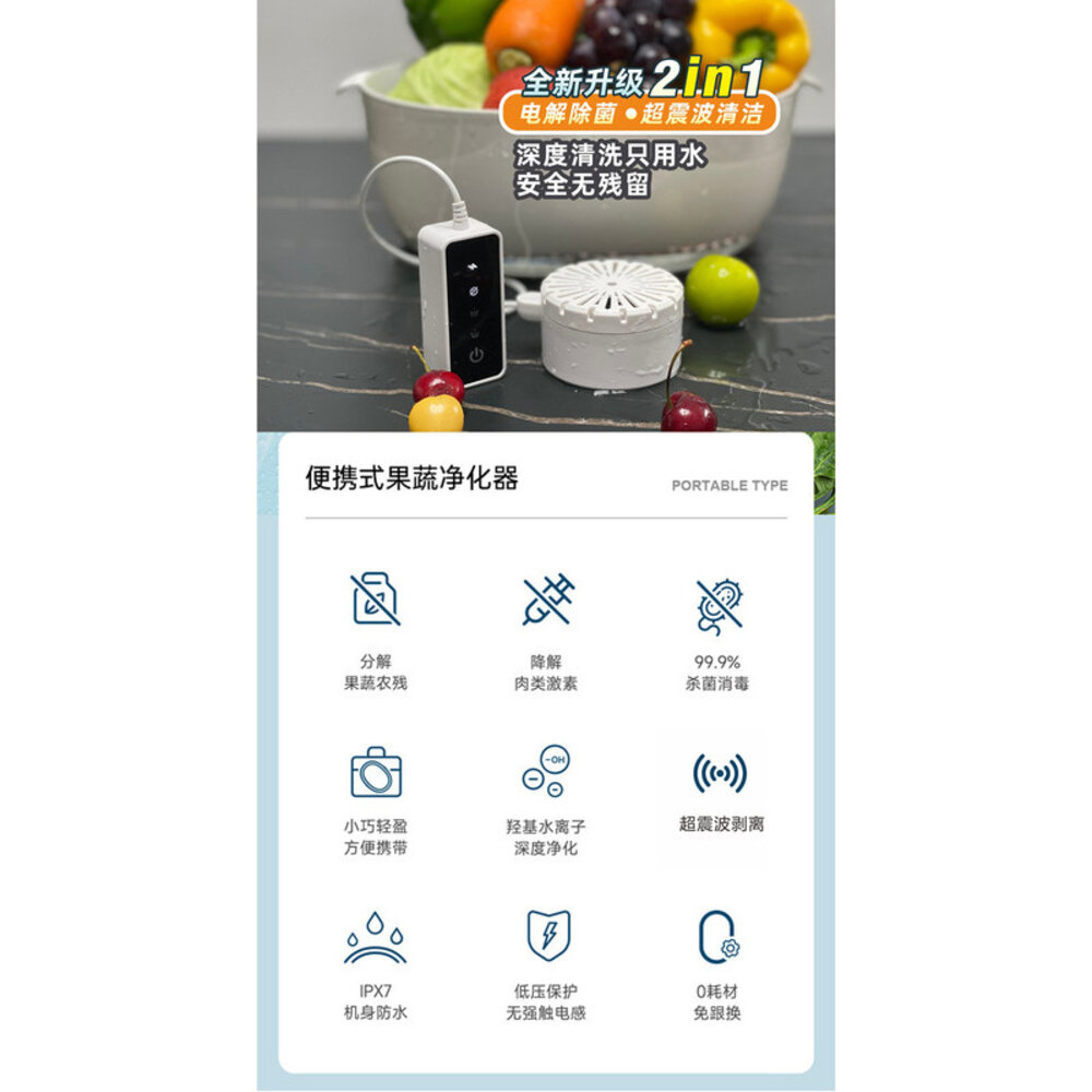 二合一電解除菌超聲波果蔬清洗器 廚房家電 果蔬清洗機 殺菌消毒器 迷你便攜 智能科技 居家必備