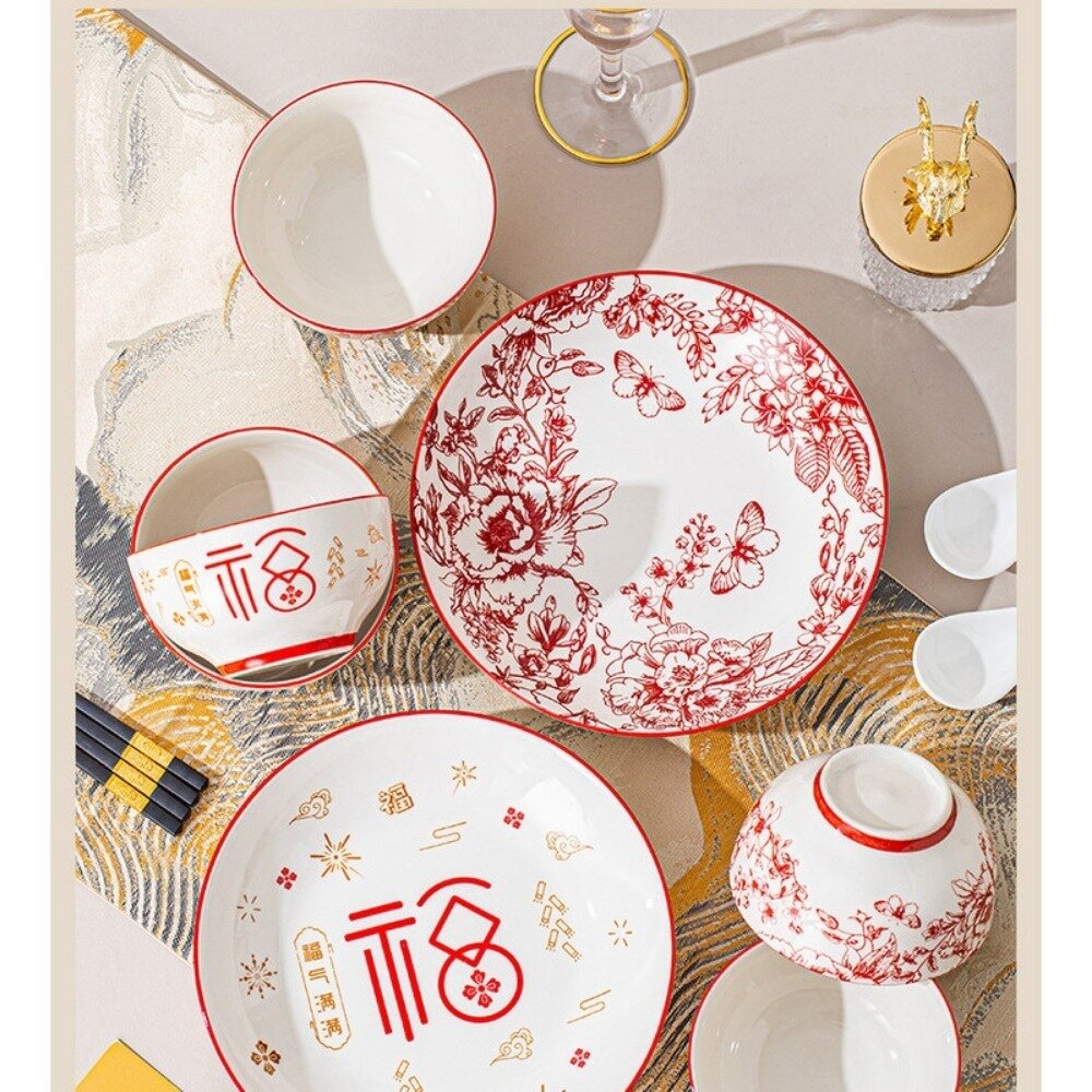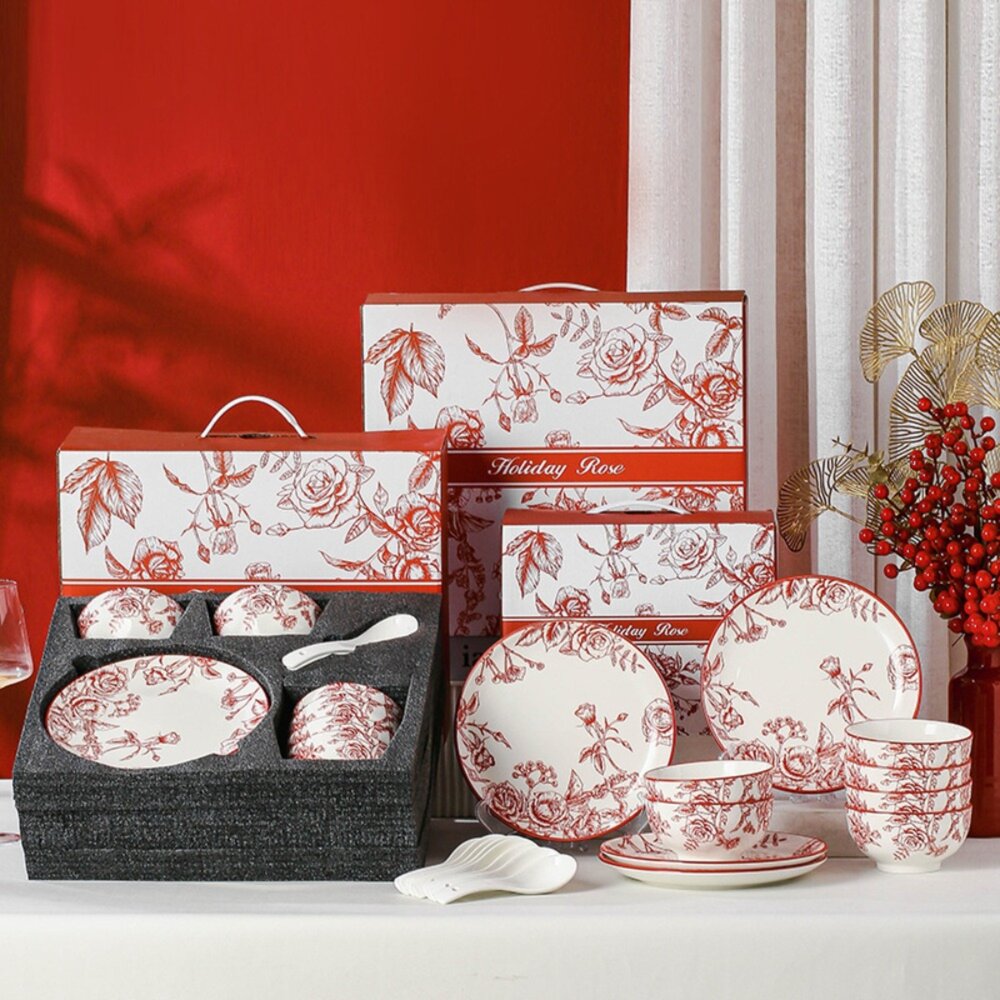 🌟 每一件餐具都經過嚴格的高溫燒製,安全無毒,讓你安心使用。精美的玫瑰花紋搭配典雅的紅白配色,不只是餐具,更是餐桌上的藝術品。