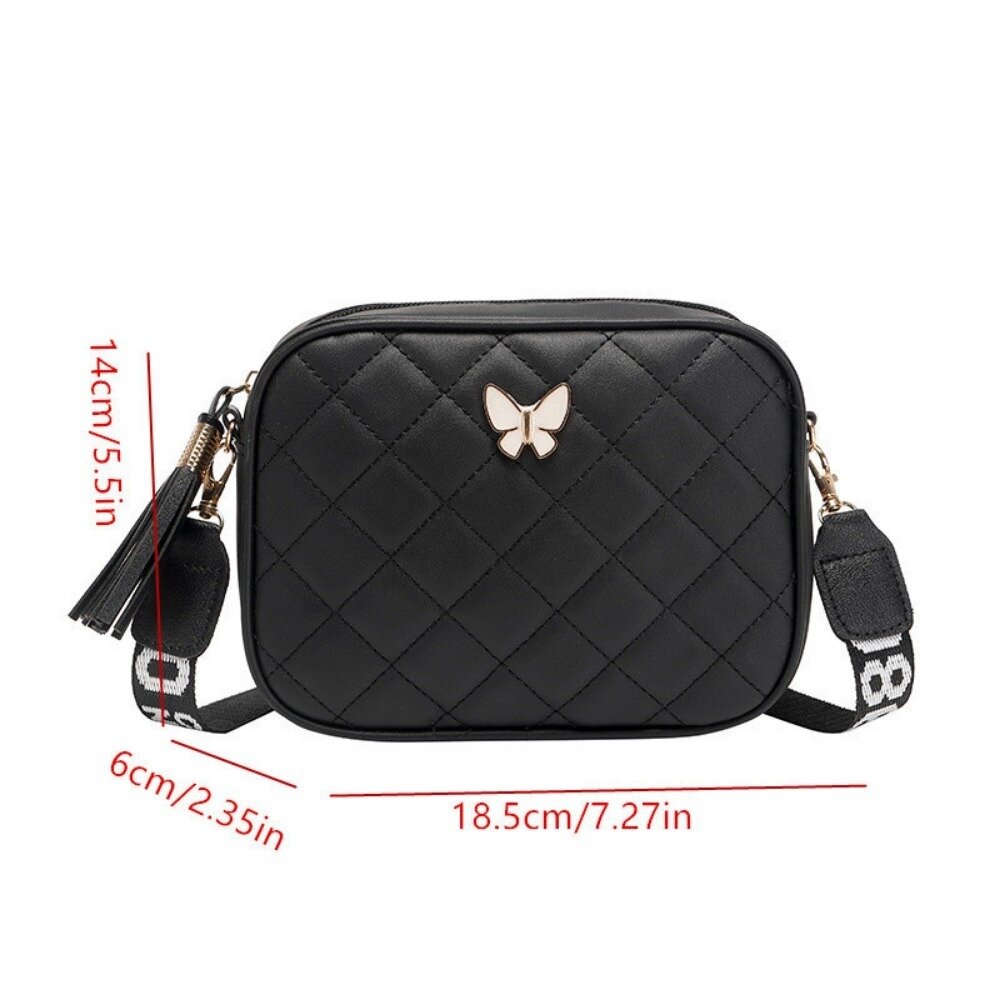 標籤:#女包, #新款休閒, #菱格繡花, #蝴蝶裝飾, #單肩包, #流蘇肩帶, #印花, #斜挎, #小方包