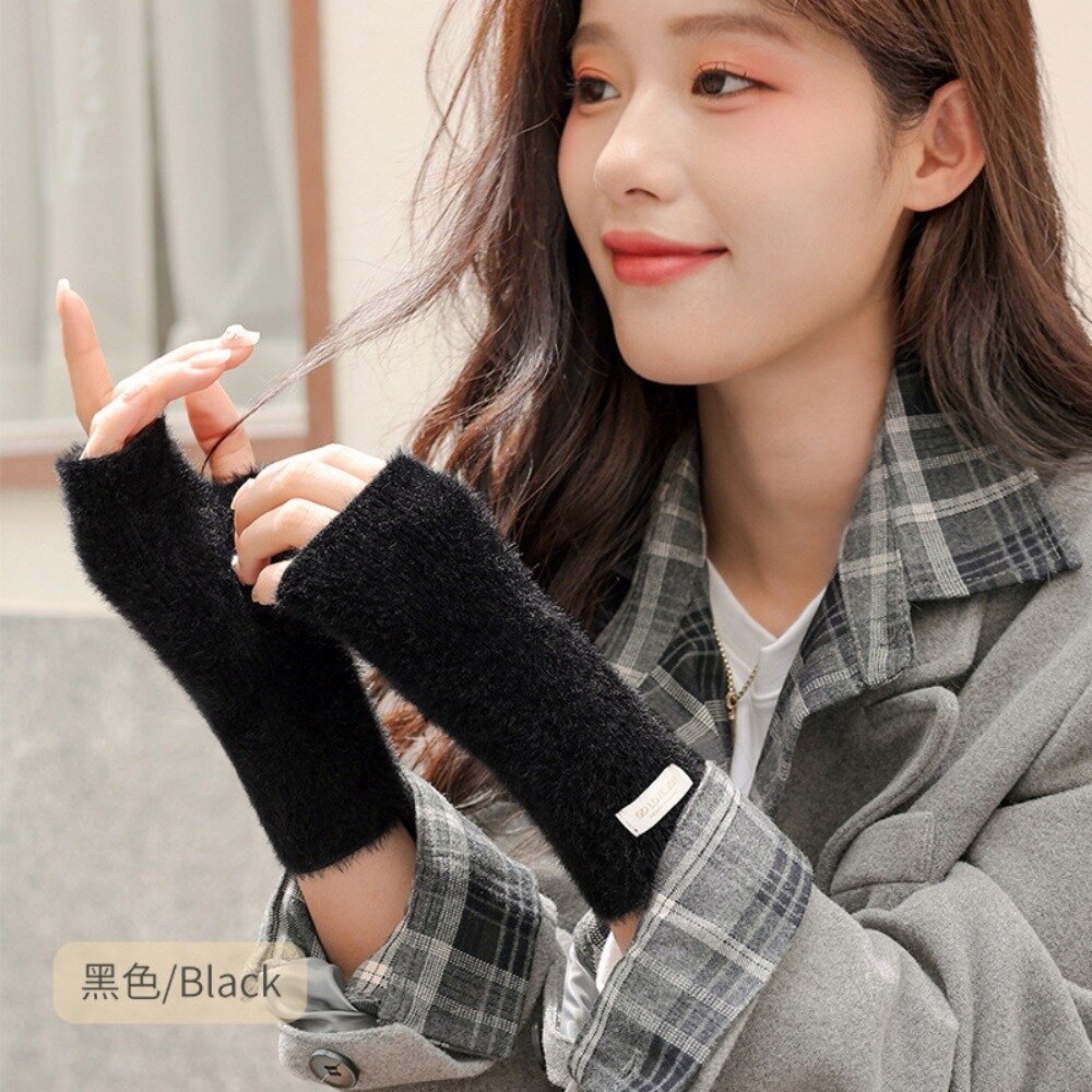 商品名稱:韓版羊毛針織半指手套 韓版仿貂絨露指手套 女裝配件 保暖手套 冬季手套 韓系 顯瘦設計 開車手套 送禮