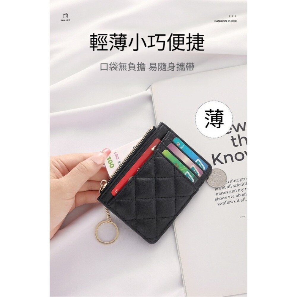 菱格紋拉鍊零錢卡片包 菱格 拉鍊鑰匙圈 多卡位 防潑水